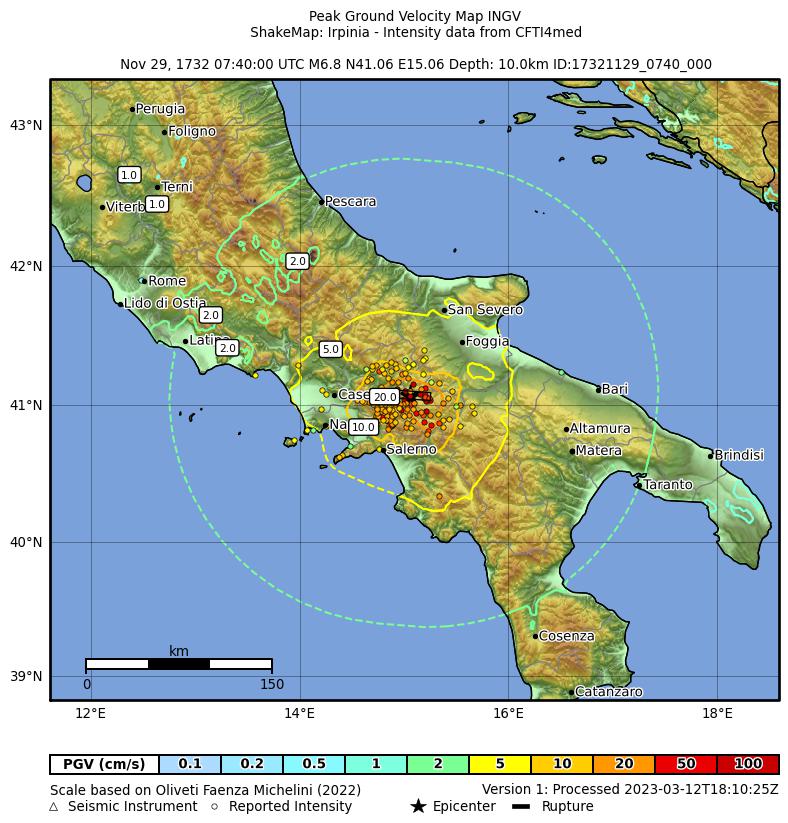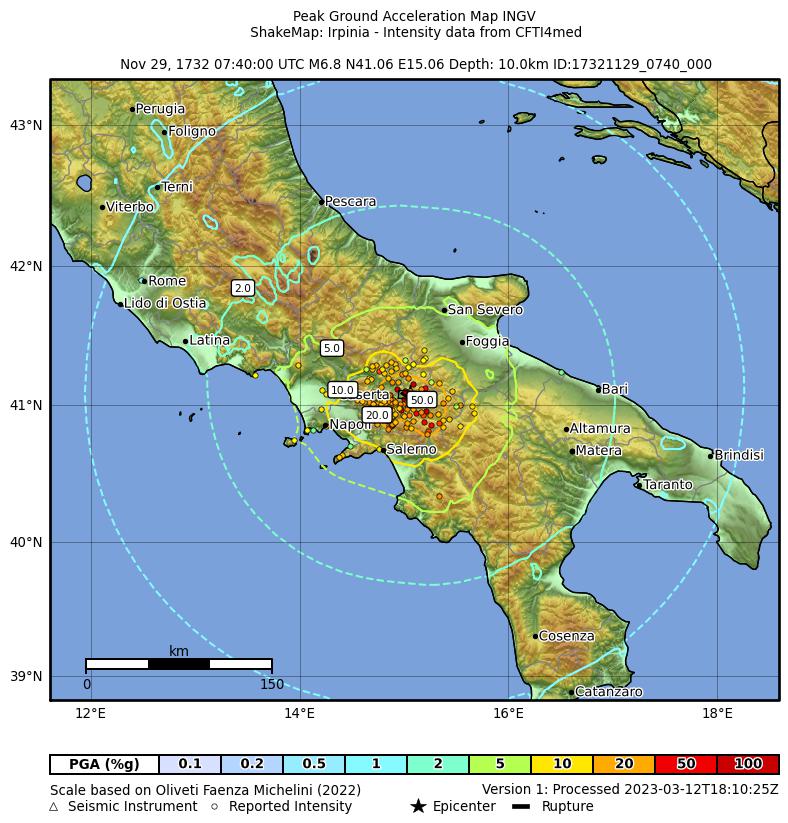 | CPTI04 | 1732-11-29 07:40 | 41.080 | 15.050 | -- | Mw 6.61 | 10-11 | CFTI2 | ||